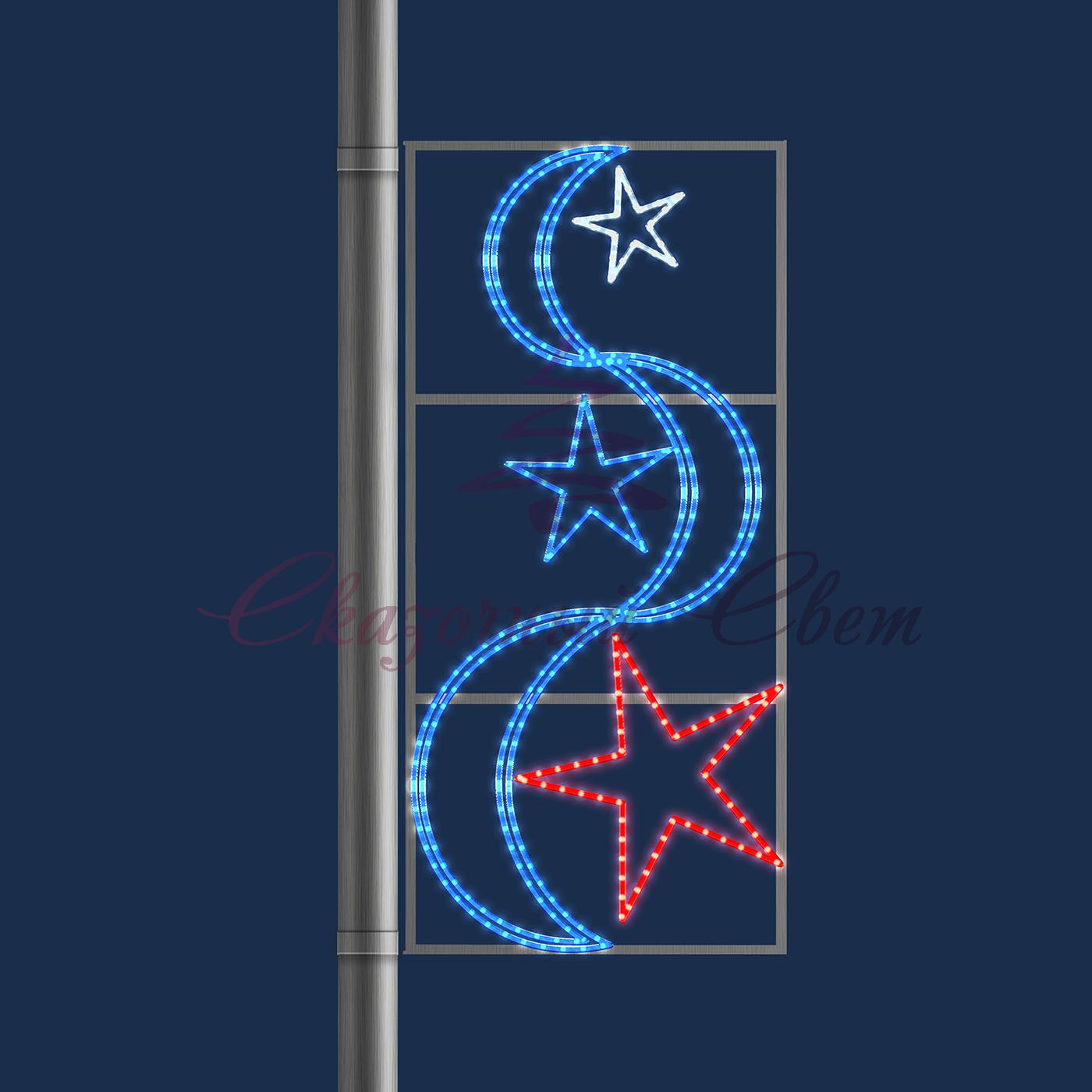 Световые консоли на алюминиевом каркасе — применяются для праздничной иллюминации городских улиц, пешеходных зон, площадей, парков и скверов. Распространенное украшение, монтируется на столб освещения с помощью бандажной ленты и скрепы. Прочный и лёгкий каркас изделия не ржавеет и не требует покраски. Гирлянды профессиональной серии ярко светят и выдерживают температуру до -50 градусов. Светодиодная конструкция поможет воплотить любую идею по оформлению города в реальность.