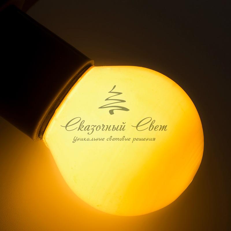 Декоративные лампы накаливания гирлянд Belt Light служат для придания свечению нужного цвета, который позволит создать праздничную атмосферу и украсить не только уличные элементы, но и интерьеры помещений. Колба лампы имеет форму шара диаметром 45мм, что позволяет увеличить площадь свечения и насыщенность светом окружающего пространства. Стекло лампы окрашено специальной влагостойкой светопропускающей краской придающей свету нужный оттенок. Декоративная лампа имеет стандартный цоколь Е27, при помощи которого установка является весьма простой процедурой не занимающей много времени. Потребление лампы составляет всего 10Вт, что позволяет снизить затраты на электроэнергию. Специальная конструкция лампы разработана таким образом, что при выходе из строя одной лампы все остальные в гирлянде Belt Light остаются работать, что позволяет без труда отыскать перегоревшую лампу и заменить. Лампы используются с гирляндами Belt Light двух или пятижильными, а при использовании специального контроллера можно создать различные динамические эффекты.