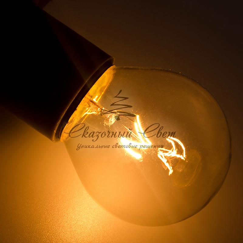 Декоративные лампы накаливания используются с гирляндой Belt Light и служат для придания свечению нужного цвета, который позволит создать праздничную атмосферу и украсить не только уличные элементы, но и интерьеры помещений. Колба лампы имеет форму шара диаметром 45мм, что позволяет увеличить площадь свечения и насыщенность светом окружающего пространства. Стекло лампы окрашено специальной влагостойкой светопропускающей краской придающей свету нужный оттенок. Декоративная лампа имеет стандартный цоколь Е27, при помощи которого установка является весьма простой процедурой не занимающей много времени. Потребление лампы составляет всего 10Вт, что позволяет снизить затраты на электроэнергию. Специальная конструкция лампы разработана таким образом, что при выходе из строя одной лампы все остальные в гирлянде Belt Light остаются работать, что позволяет без труда отыскать перегоревшую лампу и заменить. Лампы используются с гирляндами Belt Light двух или пятижильными, а при использовании специального контроллера можно создать различные динамические эффекты.