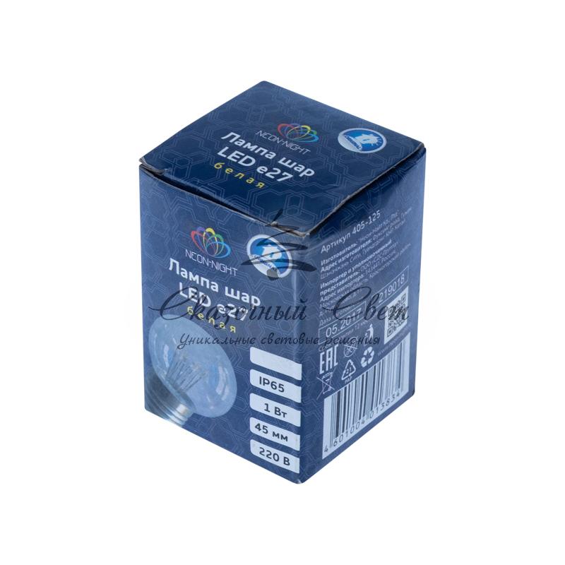 Декоративные светодиодные лампы используются с гирляндой Belt Light и служат для украшения улиц, фасадов зданий и интерьеров. Колба лампы имеет форму шара диаметром 45мм, что позволяет увеличить площадь свечения и насыщенность светом окружающего пространства. Она выполнена из ударопрочного прозрачного поликарбоната. 6 светодиодов расположены внутри таким образом, что создается впечатление что перед вами лампа накаливания уникального цвета. Декоративная лампа имеет стандартный цоколь Е27, при помощи которого установка является весьма простой процедурой не занимающей много времени. Номинальная мощность светодиодов составляет 1 Вт, полная мощность для выбора контроллера и расчетов при подключении составляет 6 ВА. Светодиодные лампы используются с гирляндами Belt Light двух или пятижильными, а при использовании специального контроллера можно создать различные динамические световые эффекты.