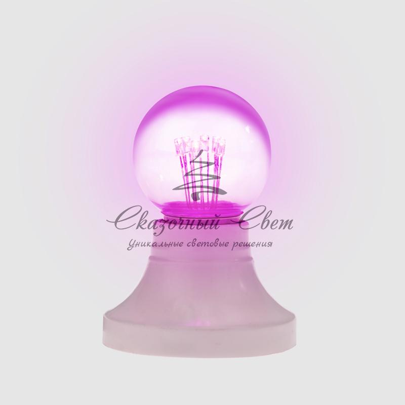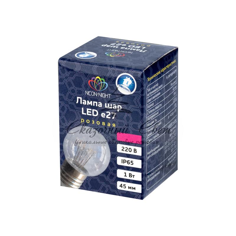 Лампа шар e27 6 LED Ø45мм - розовая, прозрачная колба, эффект лампы накаливания купить в интернет-магазине Сказочный свет