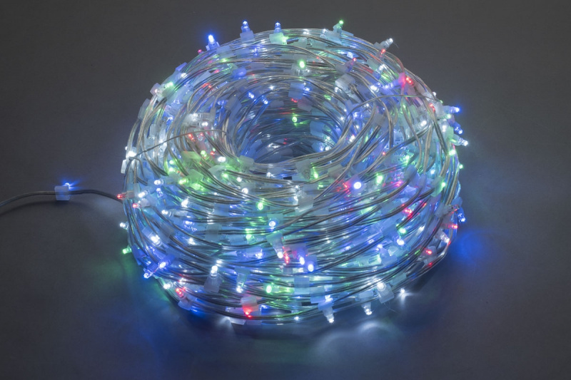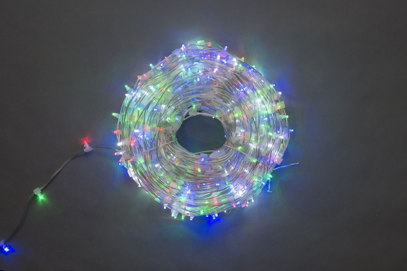 Клип-лайт, длина 100М без трансформатора, мульти цвет, прозраный провод купить в интернет-магазине Сказочный свет