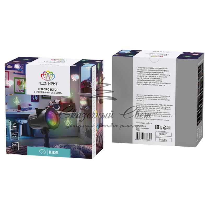 LED проектор, 12 сменных слайдов, цвет RGBW, 12В купить в интернет-магазине Сказочный свет