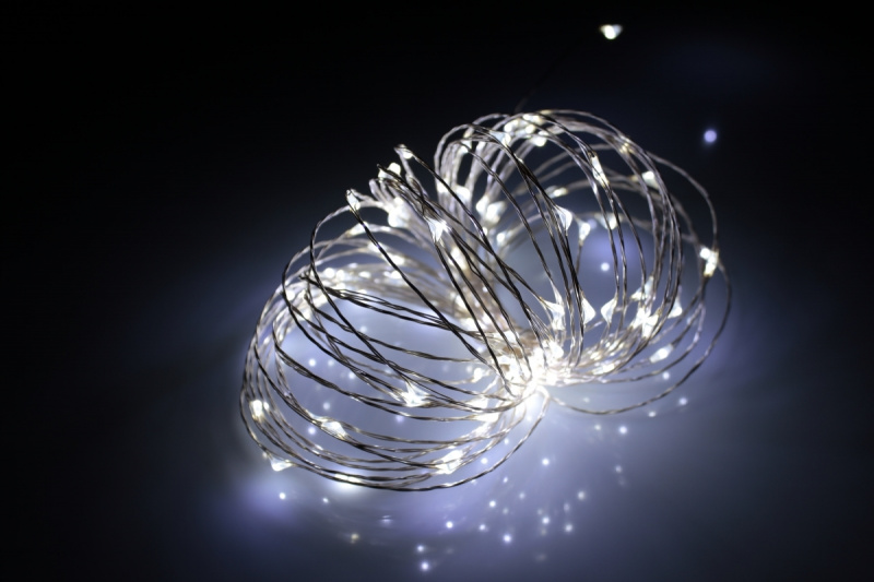 Гирлянда нить это вереница светодиодов соединенных между собой тонким проводом, которая может работать в разных режимах, как с эффектом мерцания, так и с более интересными светодинамическими эффектами, если подключить гирлянду нить через специальный контролер. На диоды гирлянды нить поверх обычного стеклянного корпуса, одевают еще и белые прозрачные шарики или другие фигуры, что дает еще более интересный зрительный эффект.