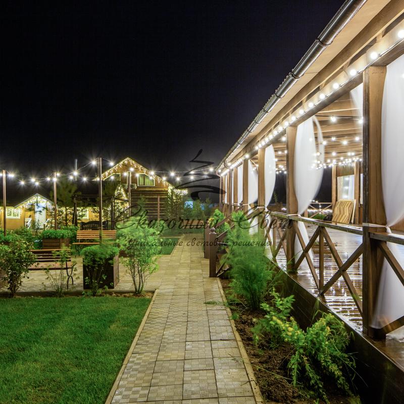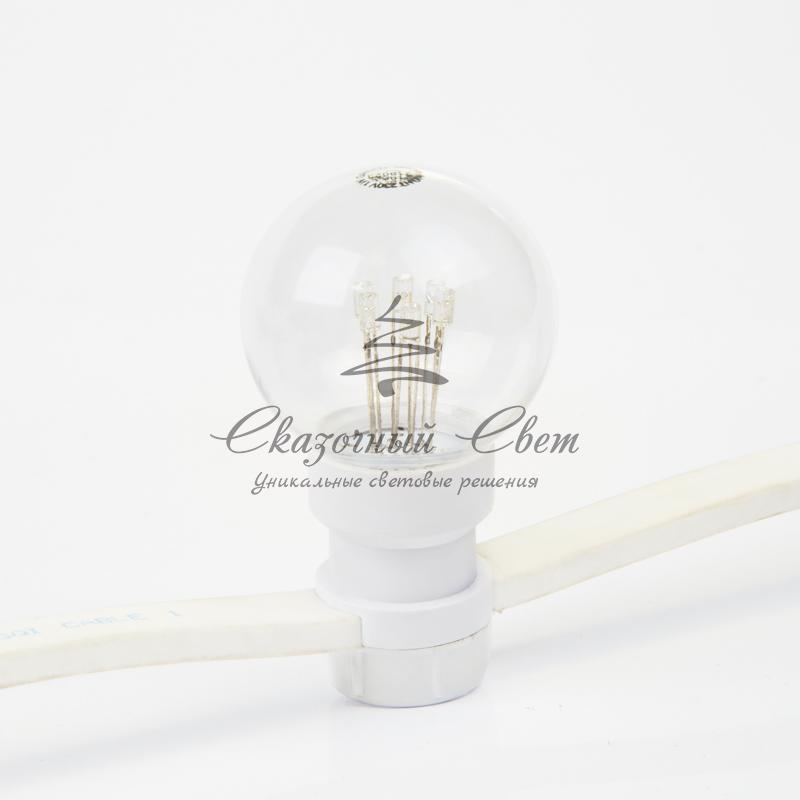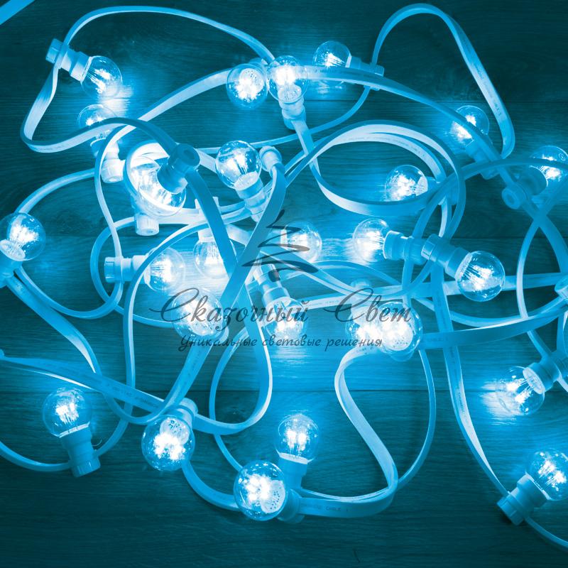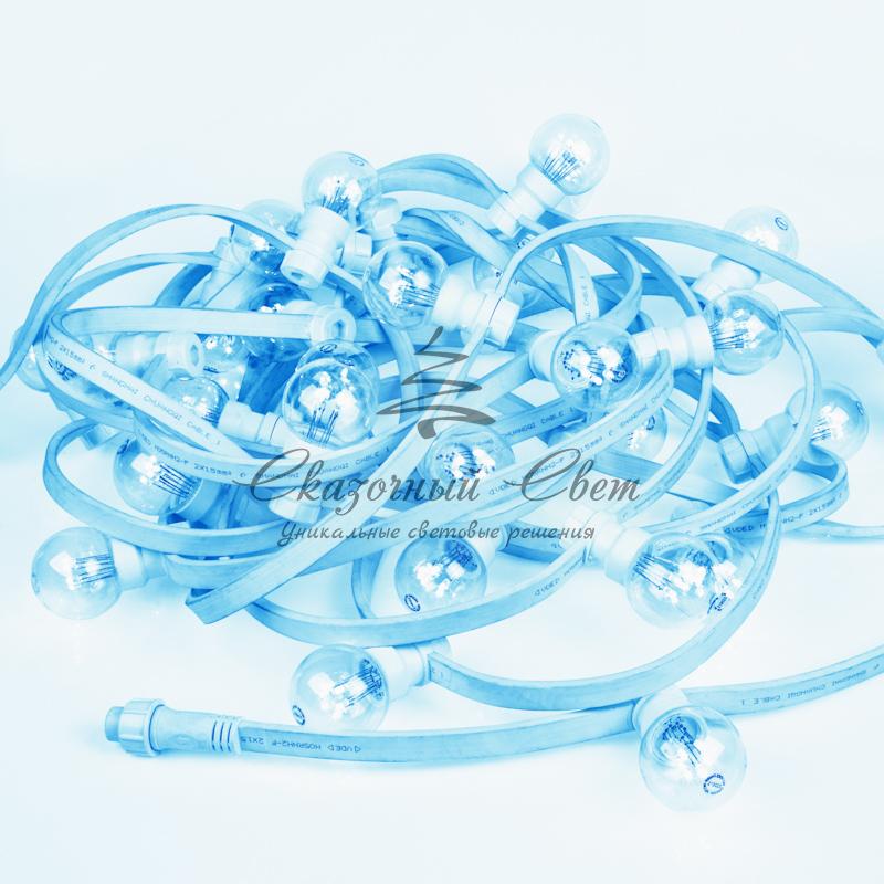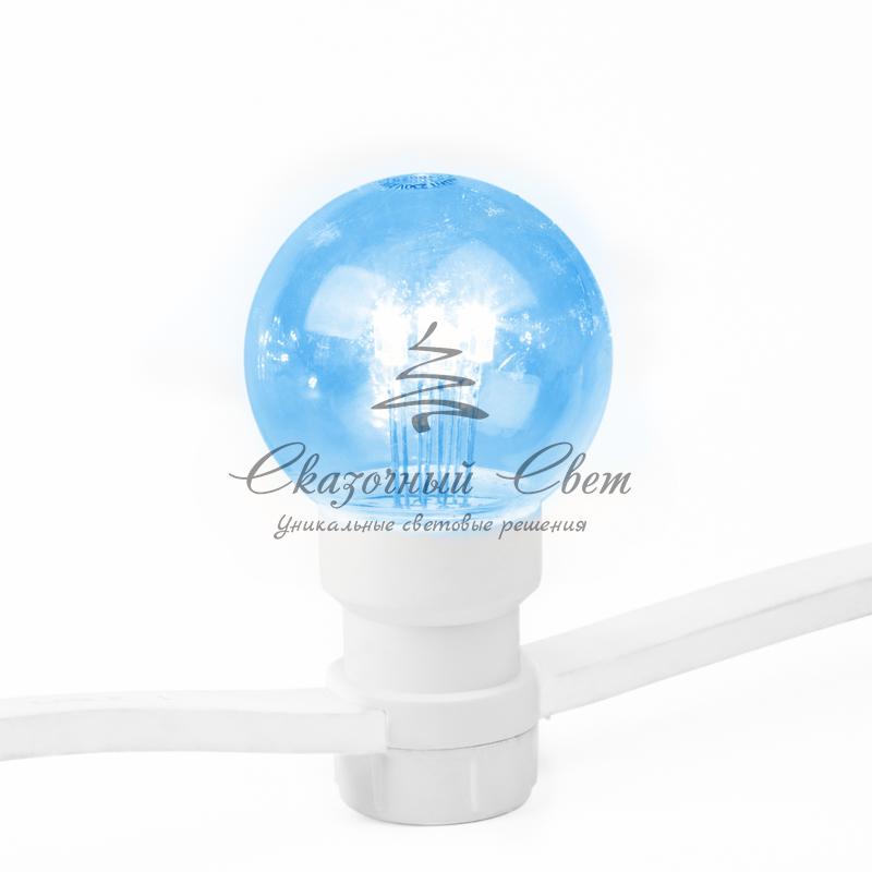 LED Galaxy Bulb String представляет собой полностью готовый к использованию комплект из гирлянды Белт-лайт со степенью защиты IP65, укомплектованной 30 светодиодными лампочками синего свечения, которые уже вкручены в патроны. Для подключения к розетке предусмотрен 1,5-метровый кабель с вилкой. Гирлянда длиной 10 метров выполнена на основе провода в пылевлагонепроницаемой изоляционной оболочке из белого каучука. Изделие подходит для использования как дома, так и на улице — в суровых условиях климата. Удобный разъем на конце кабеля позволяет соединять до 10 комплектов.