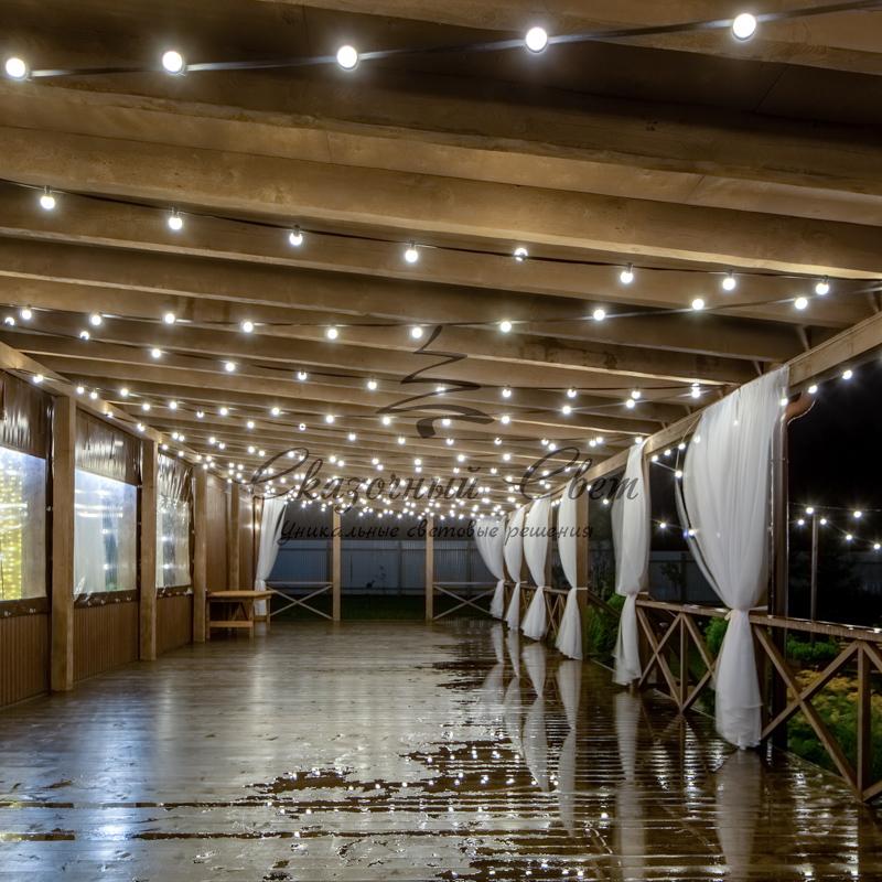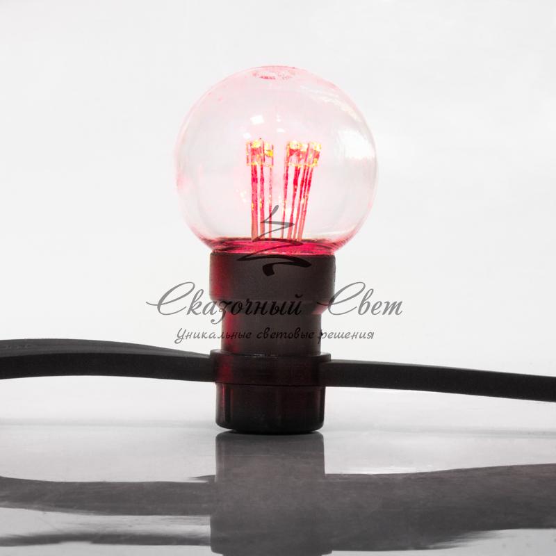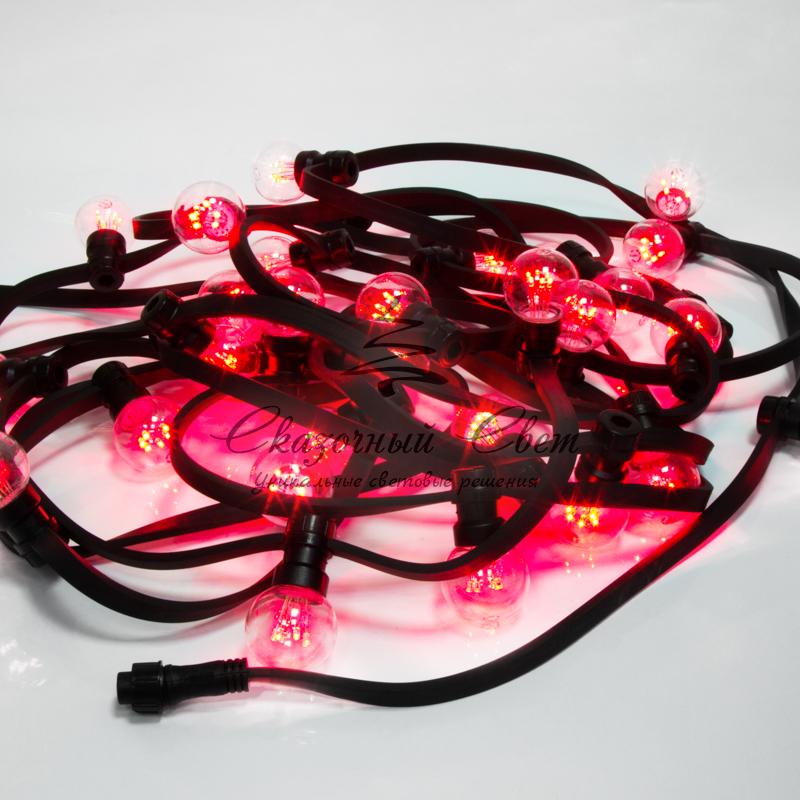 Гирлянда LED Galaxy Bulb String длиной 10 метров с влагозащитой IP65 подходит для использования в помещениях и на улице при температуре –40…+50 °С. Морозостойкая герметичная оболочка из черного каучука переносит самые суровые погодные условия, не теряя гибкость. 30 светодиодных ламп с диаметром 45 мм уже вкручены в патроны гирлянды-основы линейки Белт-лайт. Каждая из них скрывает внутри 6 ярких современных диодов. Декоративное изделие работает от сети 230 Вольт и характеризуется высокой энергоэффективностью: светодиодные лампы тратят на 80–90% меньше электричества, по сравнению с источниками накаливания.