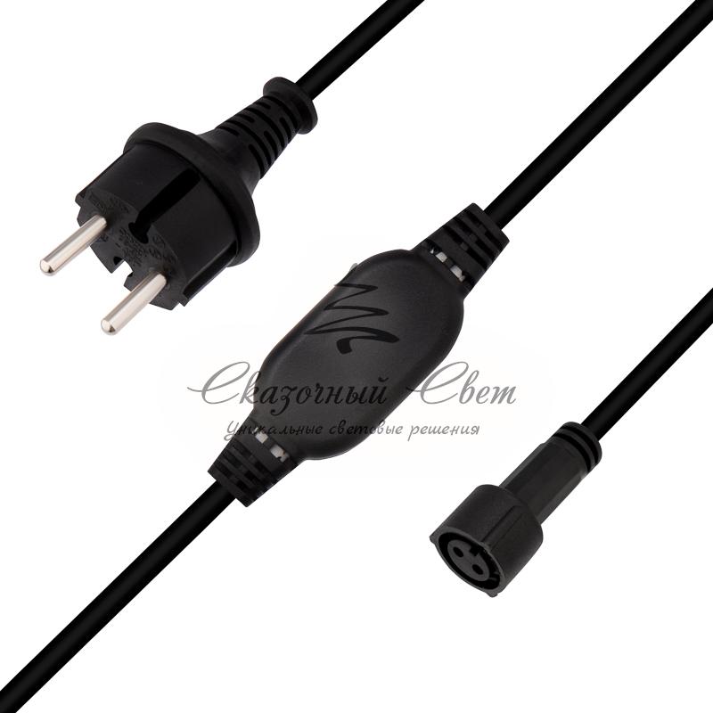 Шнур питания для гирлянды "Дюраплей", 4А, подключение до 200м, черный каучук, 230 В купить в интернет-магазине Сказочный свет