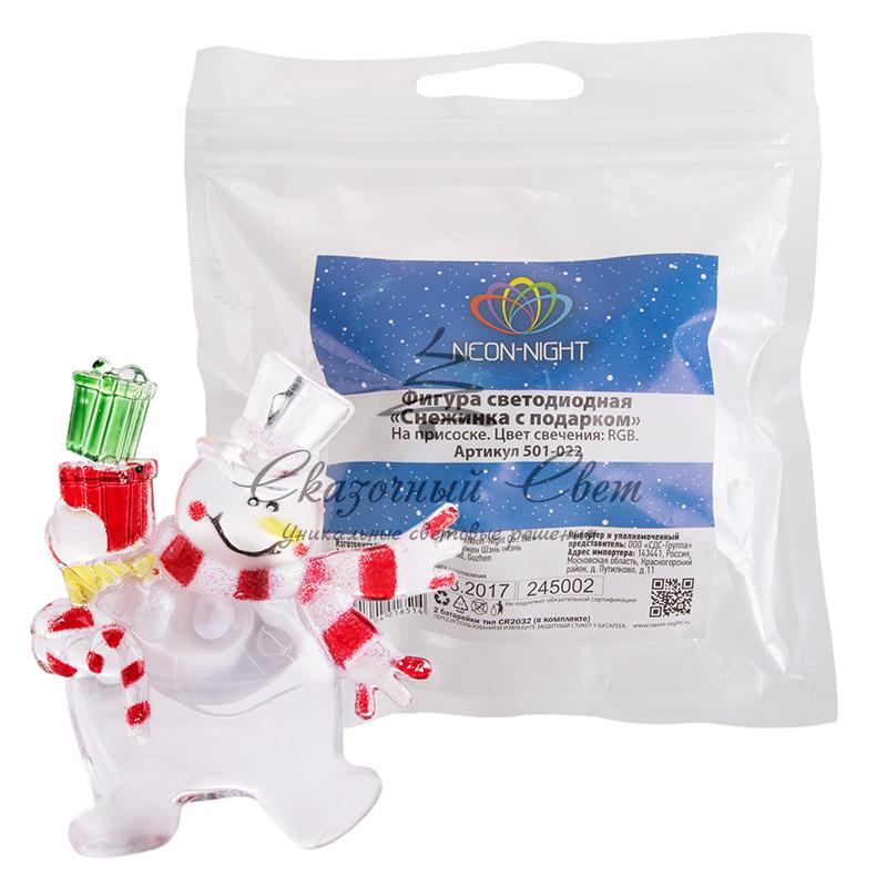 "Снеговик с подарком" RGB на присоске купить в интернет-магазине Сказочный свет