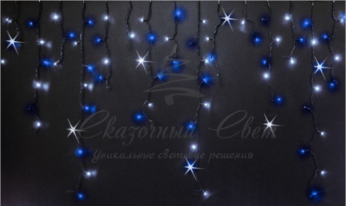 Гирлянда Бахрома 3х0.5 м, колпачок, СИНИЙ+БЕЛЫЙ, прозрачный провод купить в интернет-магазине Сказочный свет