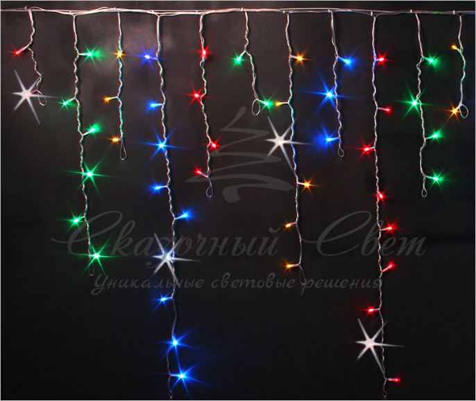 Гирлянда Бахрома 3х0.9 м МУЛЬТИ, мерцание, прозрачный провод купить в интернет-магазине Сказочный свет