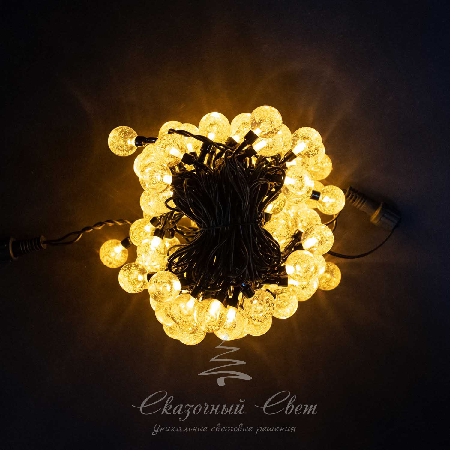 Светодиодная гирлянда Bubble Ball 10 м, черный провод, 100 led, желтый купить в интернет-магазине Сказочный свет