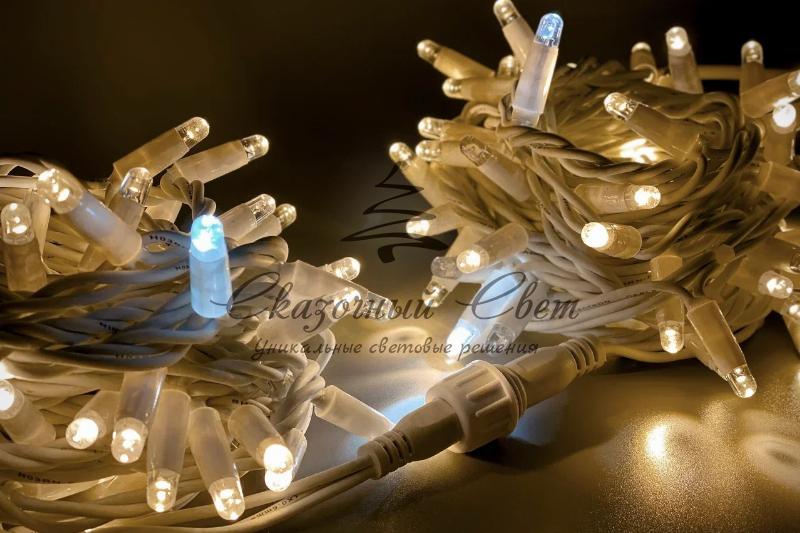 Светодиодная гирлянда нить 10м, 220В, флэш, белый провод РЕЗИНА, теплая белая купить в интернет-магазине Сказочный свет