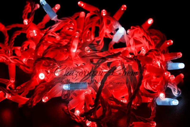 Светодиодная гирлянда нить 10м, 24В, флэш, прозрачный провод, красная купить в интернет-магазине Сказочный свет