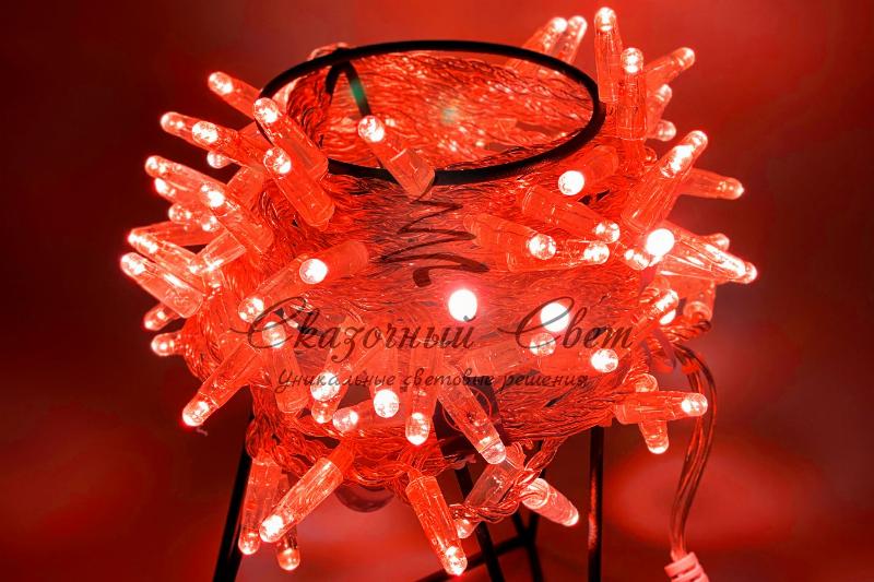 Светодиодная гирлянда нить 10м, 24В, статика, прозрачный провод, красная купить в интернет-магазине Сказочный свет