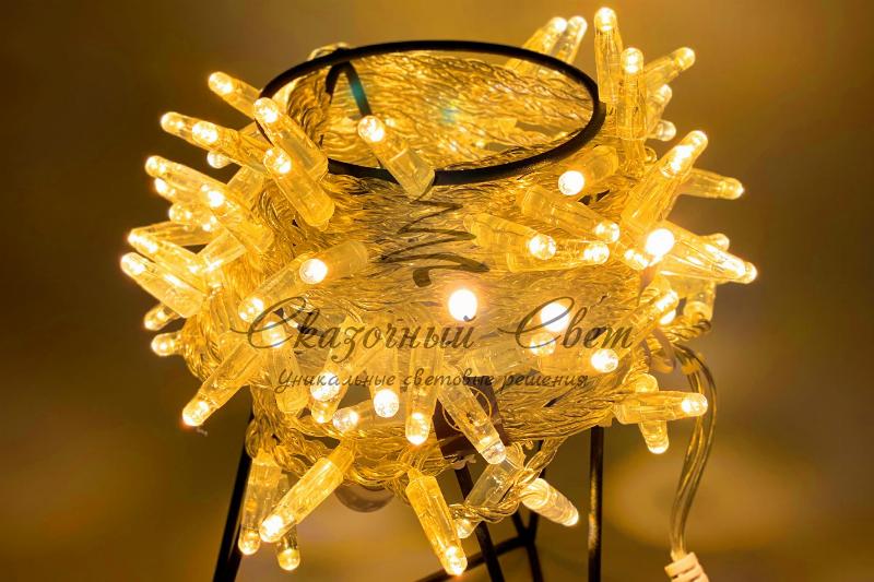 Светодиодная гирлянда нить 10м, 24В, статика, прозрачный провод, желтая купить в интернет-магазине Сказочный свет