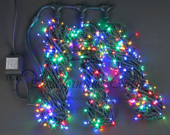 Гирлянда на дерево уличная 3 Нити по 20 м с контр, МУЛЬТИ, зеленый провод купить в интернет-магазине Сказочный свет