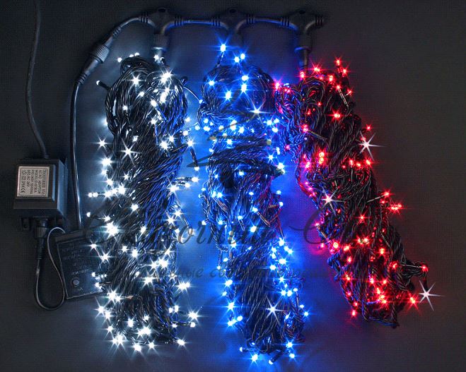 Уличные светодиодные гирлянды существуют в трех видах питания это 220В, 12В и 24В, гирлянды которые подключаются к сети в 220В, просты в использовании и обычно дешевле по стоимости, светодиоды в них соединены последовательно, в уличных длинных гирляндах идет параллельное соединение нескольких светодиодов. Важно знать, что уличные гирлянды должны иметь надежную изоляцию, что бы обеспечить защиту людей от удара электрического тока. Гирлянды, которые с питанием 12В и 24В представляют гораздо меньше опасности (при условии, что понижающий трансформатор в исправном состоянии и хорошо изолирован) для человека и подключаются к сети 220В через трансформатор понижения, такие трансформаторы при продаже обычно идут в комплекте с гирляндами. Дополнительное преимущество гирлянд это последовательно-параллельное соединение, такие светодиодные гирлянды можно резать отрезками и потом соединять параллельно. Это позволяет использовать такую гирлянду еще более гибко и подбирать её для украшения еще большего количества разнообразных объектов. Так же благодаря последовательно-параллельному соединению гирлянды при повреждении светодиода, вся гирлянда не выходит из строя, а погасает от 4 до 6 светодиодов, что не всегда сильно заметно на общем фоне и не требует замены всей цепи, что не скажешь о гирляндах с питанием напрямую от сети 220В.
