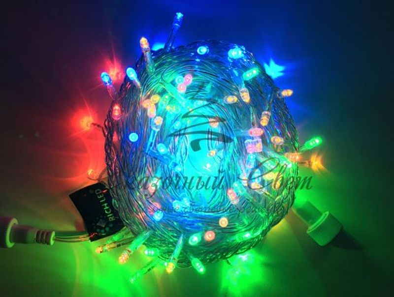 Гирлянда Нить 10 м, 220В, флэш, колпачок, МУЛЬТИ, белый провод купить в интернет-магазине Сказочный свет