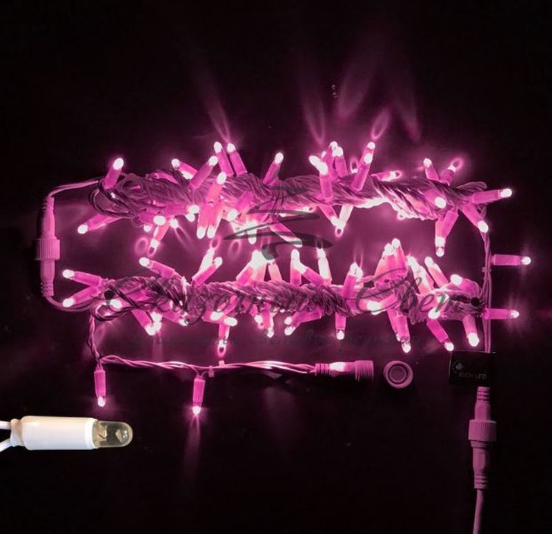 Гирлянда Нить 10 м, 220В, флэш, колпачок, РОЗОВЫЙ, белый провод купить в интернет-магазине Сказочный свет