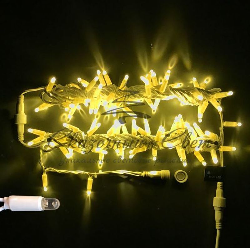 Светодиодная гирлянда нить, продается отрезками, длина которых составляет 7.5 и 10 м, каждый отрезок которой снабжен специальным герметичным разъемом на конце, обеспечивающим надежную защиту от попадания влаги и пыли. Дополнительно эти разъемы позволяют соединять отрезки нити между собой в количестве до 10 отрезков (что бы соединить большее количество отрезков необходимо использовать дополнительный блок питания, 1 блок питания = 10 отрезков нитей), что позволяет получить необходимую длину гирлянды.