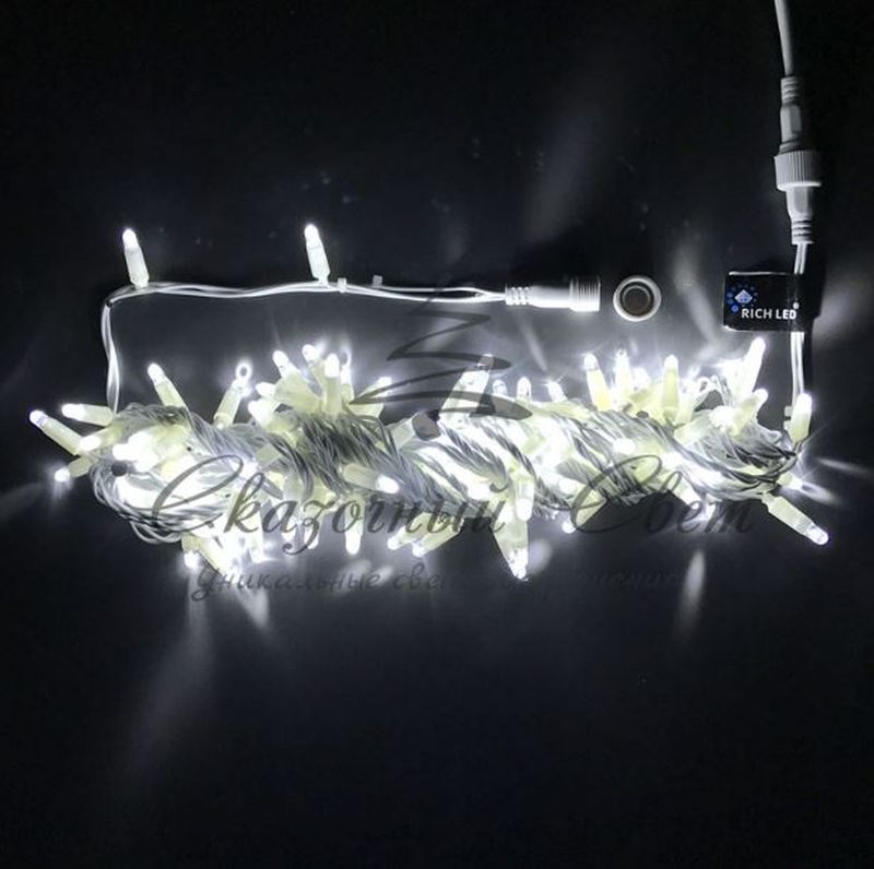 Гирлянда Нить 10 м, 24В, флэш, колпачок, БЕЛЫЙ, белый провод купить в интернет-магазине Сказочный свет