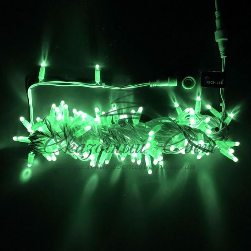 Гирлянда Нить 10 м, 24В, флэш, колпачок, ЗЕЛЕНЫЙ, белый провод купить в интернет-магазине Сказочный свет