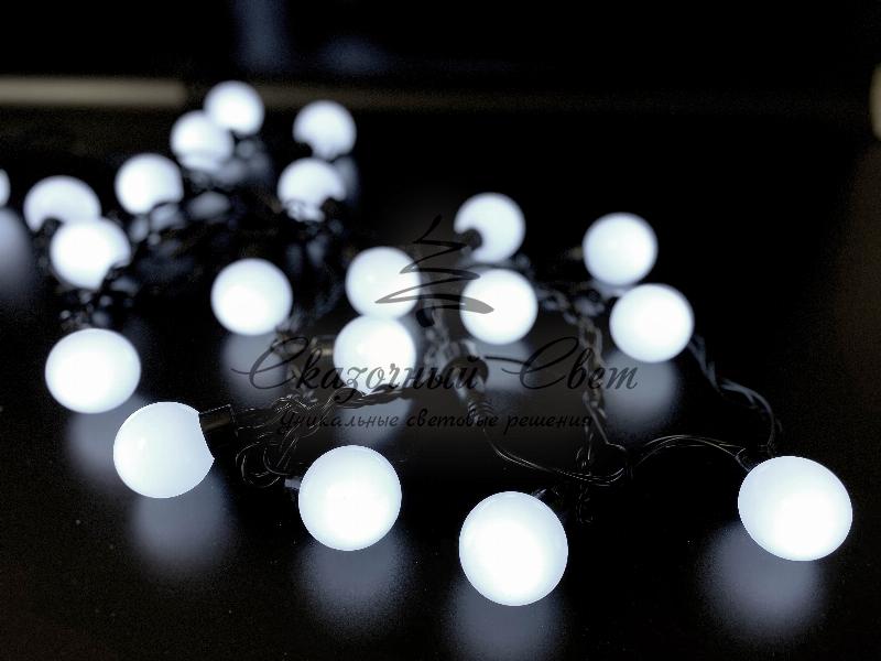 Светодиодная гирлянда шарики 24В, 5м, d=40 мм, статика, черный провод РЕЗИНА 2,3 мм, белые купить в интернет-магазине Сказочный свет