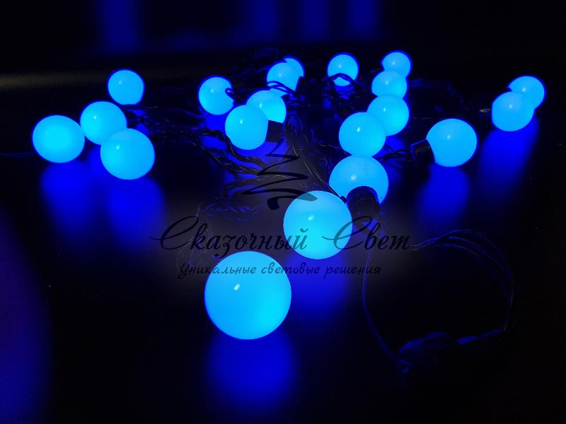 Светодиодная гирлянда шарики 24В, 5м, d=40 мм, статика, черный провод РЕЗИНА 2,3 мм, синие купить в интернет-магазине Сказочный свет