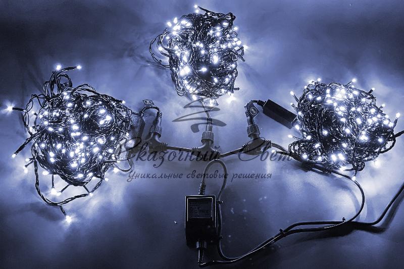 Светодиодная гирлянда спайдер, 3 нити по 20м, флэш, черный провод, белая купить в интернет-магазине Сказочный свет