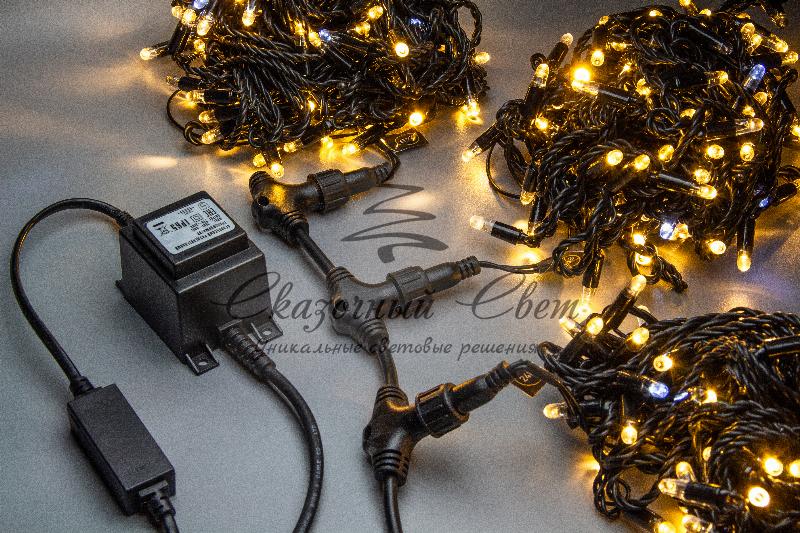 Светодиодная гирлянда спайдер, 3 нити по 20м, колпачок, флэш, черный провод, теплая белая купить в интернет-магазине Сказочный свет