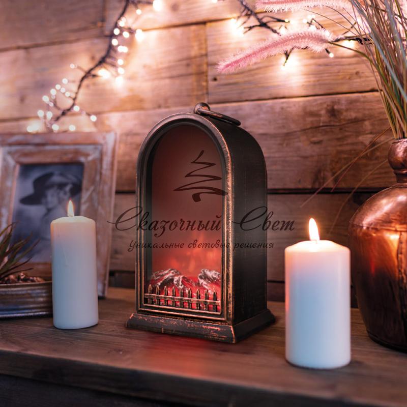 Светодиодный камин «Фьюжн» с эффектом живого огня 14,7x11,7x25 см, батарейки 2хС (не в комплекте) USB, бронзовый купить в интернет-магазине Сказочный свет