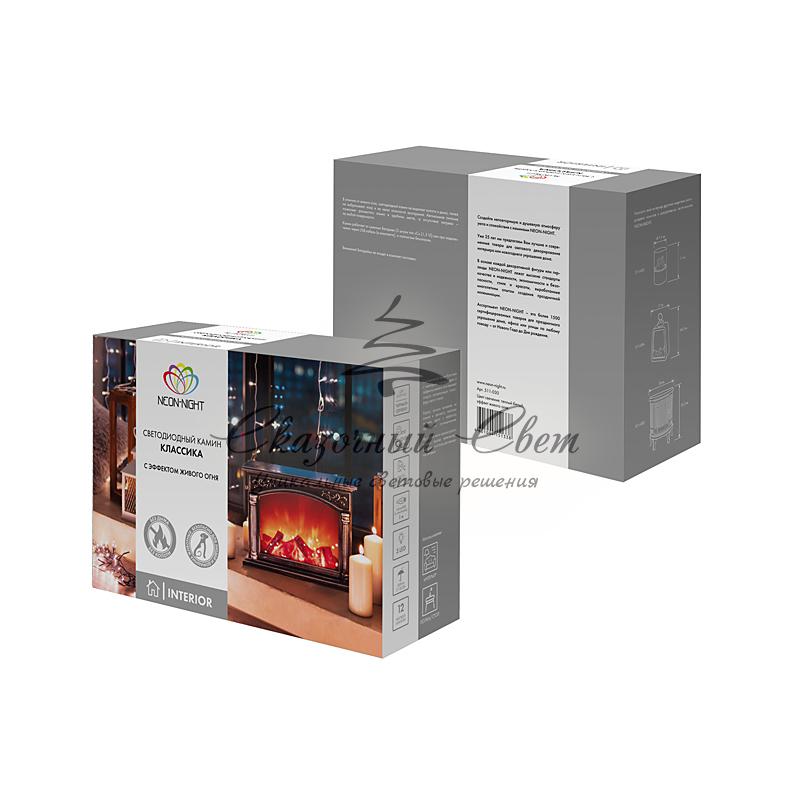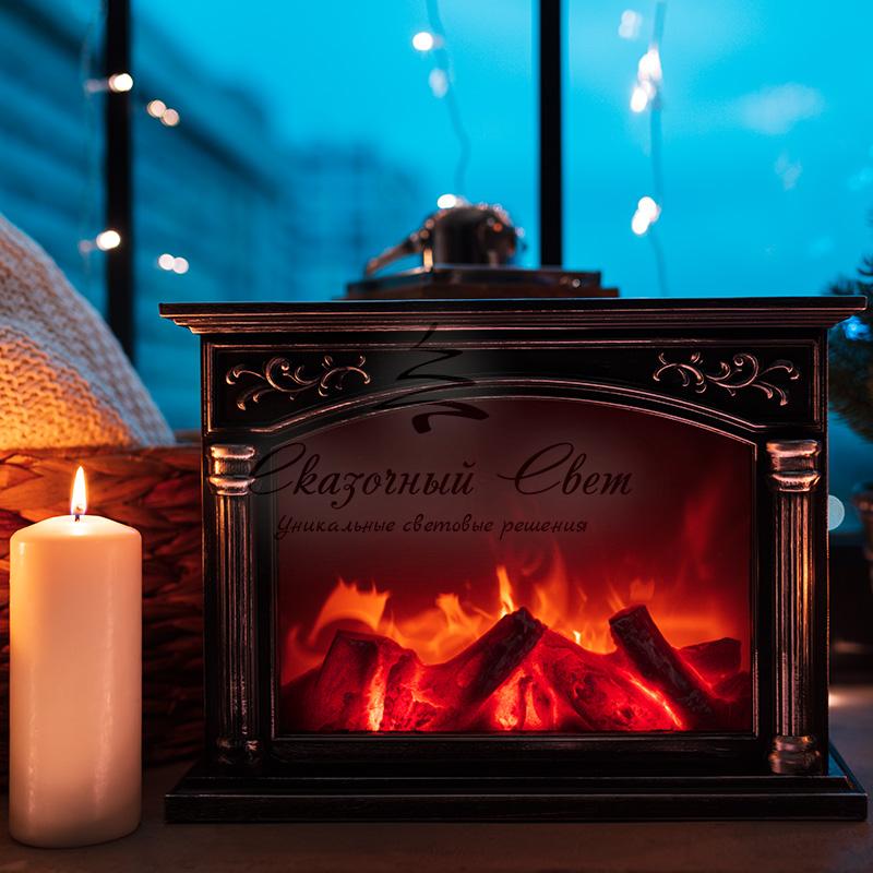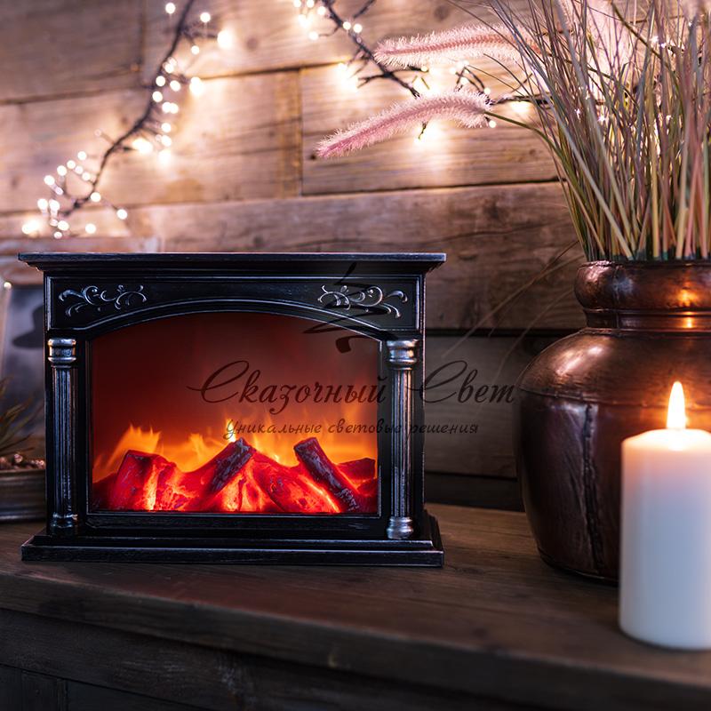 Светодиодный камин "Классика" с эффектом живого огня 33х12х24 см, батарейки 3хС (не в комплекте) или от USB (в комплекте) купить в интернет-магазине Сказочный свет