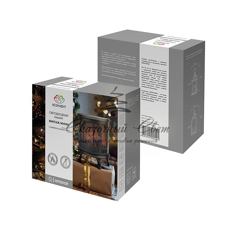 Светодиодный камин «Винтаж мини» с эффектом живого огня 24.8х12.7х30 см, батарейки 3хС (не в комплекте), с USB, черный купить в интернет-магазине Сказочный свет