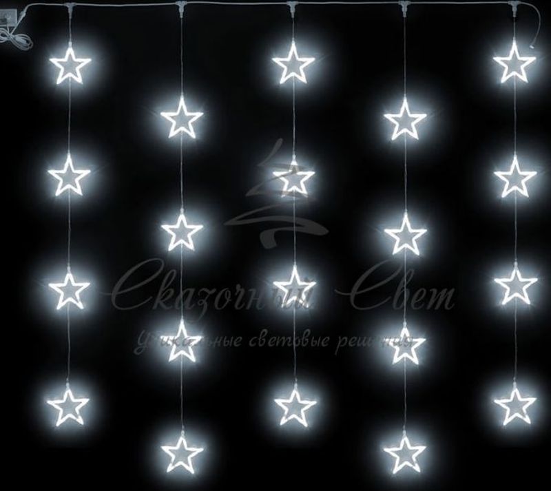 Гирлянда Занавес 2х2 Звезды, БЕЛЫЙ, прозрачный провод купить в интернет-магазине Сказочный свет