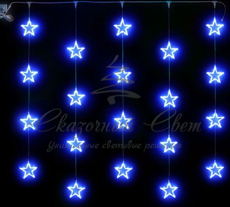 Гирлянда Занавес 2х2 Звезды, СИНИЙ, прозрачный провод купить в интернет-магазине Сказочный свет