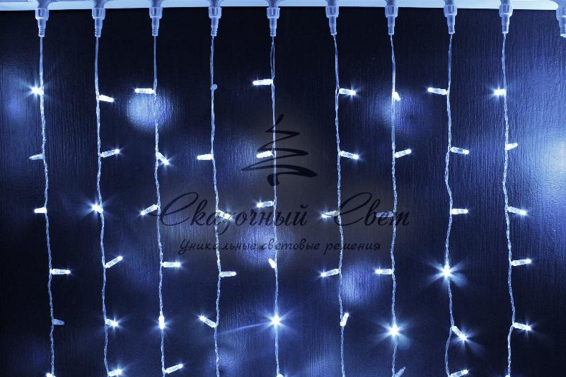 Светодиодный занавес 2х3м, флэш, прозрачный провод, белый купить в интернет-магазине Сказочный свет