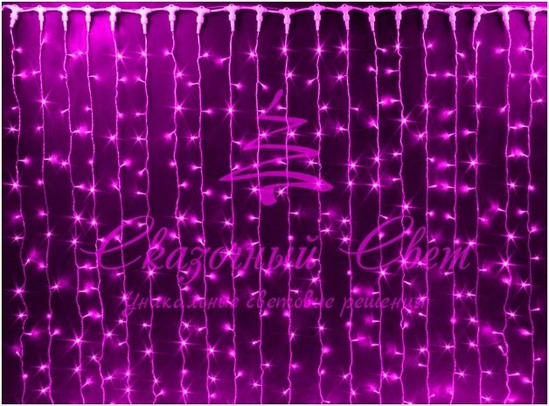 Гирлянда Занавес 2х3 м, колпачок, РОЗОВЫЙ, белый провод купить в интернет-магазине Сказочный свет