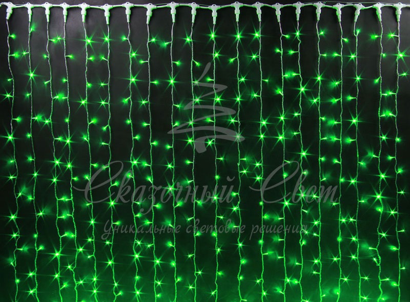 Гирлянда Занавес 2х3 м, колпачок, ЗЕЛЕНЫЙ, белый провод купить в интернет-магазине Сказочный свет