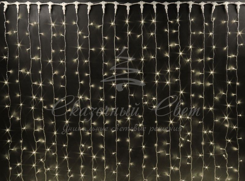 Гирлянда Занавес 2х2 м, флэш, колпачок, БЕЛЫЙ, белый провод купить в интернет-магазине Сказочный свет