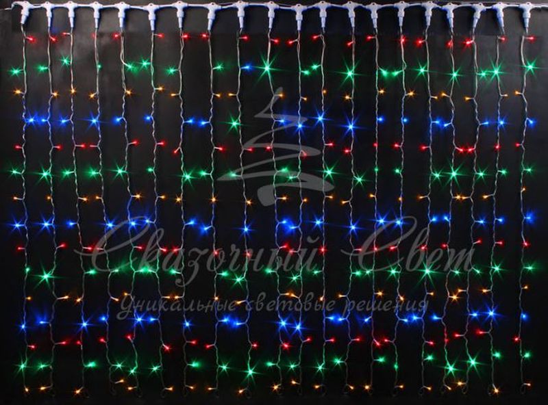 Гирлянда Занавес 2х9 м, флэш, колпачок, МУЛЬТИ, белый провод купить в интернет-магазине Сказочный свет