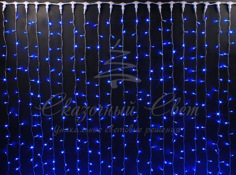 Гирлянда Занавес 2х2 м, СИНИЙ, прозрачный провод купить в интернет-магазине Сказочный свет