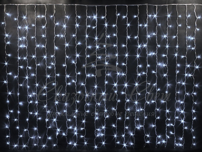 Гирлянда Занавес 2х1.5 м облегченный, БЕЛЫЙ, черный провод купить в интернет-магазине Сказочный свет