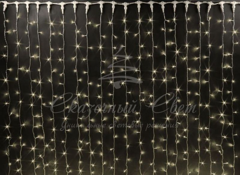 Гирлянда Занавес 2х1.5 м облегченный, флэш, колпачок, ТЕПЛО БЕЛЫЙ, белый провод купить в интернет-магазине Сказочный свет