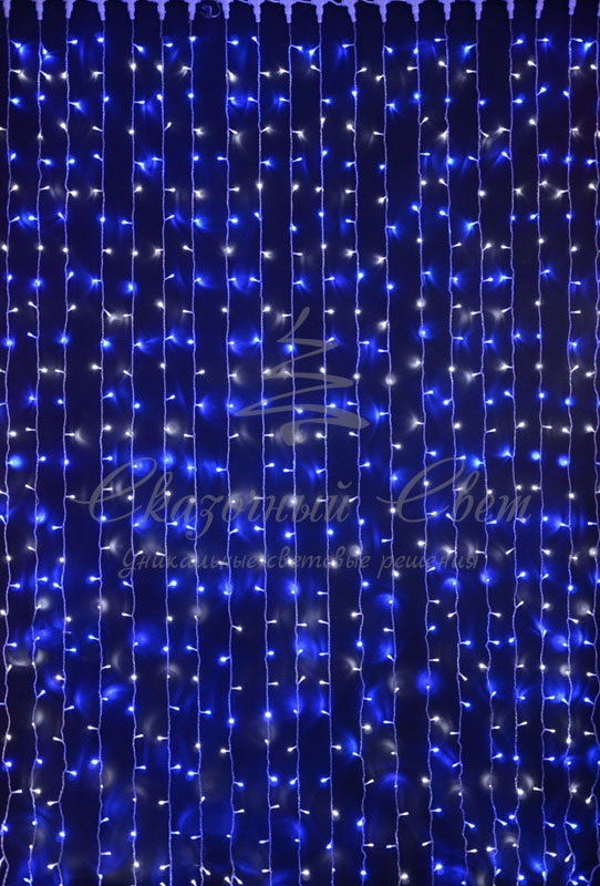 Гирлянда Занавес 2х1.5 м облегченный, СИНЕ+БЕЛЫЙ, прозрачный провод купить в интернет-магазине Сказочный свет