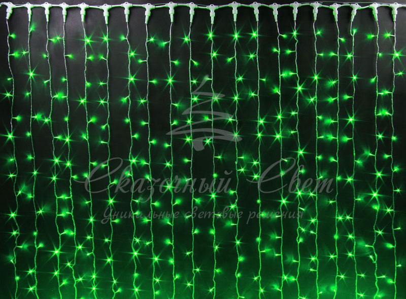 Гирлянда Занавес 2х1.5 м облегченный, ЗЕЛЕНЫЙ, прозрачный провод купить в интернет-магазине Сказочный свет
