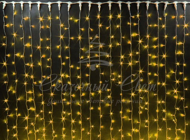 Гирлянда Занавес 2х1.5 м облегченный, ЖЕЛТЫЙ, прозрачный провод купить в интернет-магазине Сказочный свет
