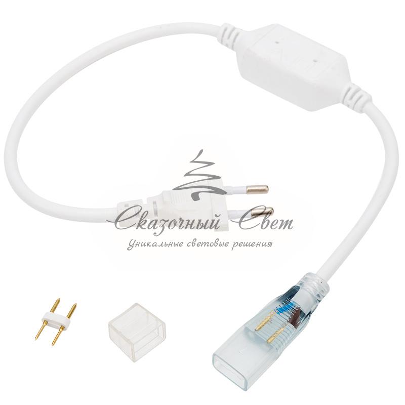 Установочный комплект подходит для подключения двухстороннего гибкого неона SMD 8х16 мм 220 В NEON-NIGHT. В комплекте: • Шнур питания с диодным мостом и вилкой • Коннектор (иглы) • Заглушка • Переходная муфта При подключении гибкого неона к соединительному разъему (муфте) необходимо заизолировать свободное воздушное пространство соединительного разъема (муфты) морозостойким силиконовым герметиком, предотвращающим попадание влаги. Сверху данного соединения необходимо использовать термоусаживаемую трубку.